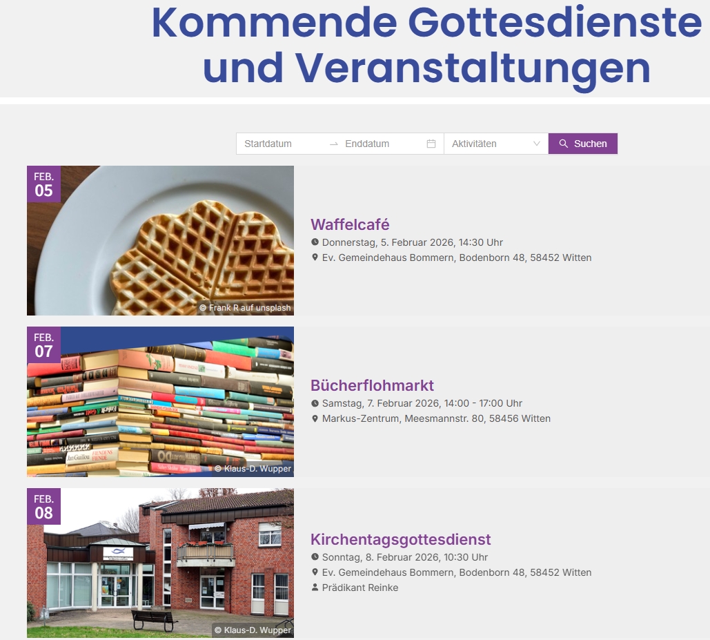Lebendige Gemeinde: Veranstaltungen / Termine in unserer Kirche bzw. im Gemeindehaus